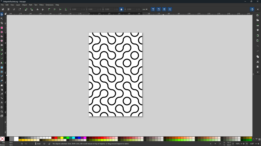 Drawing something to plot in a vector design program is relatively simple. Fire up your favorite vector design tool (Inkscape still is my favorite, but Adobe Illustrator is well-loved by many and Figma is so hot right now) and draw something! I made a quick tiles pattern using ollyoid’s Inkscape extension.